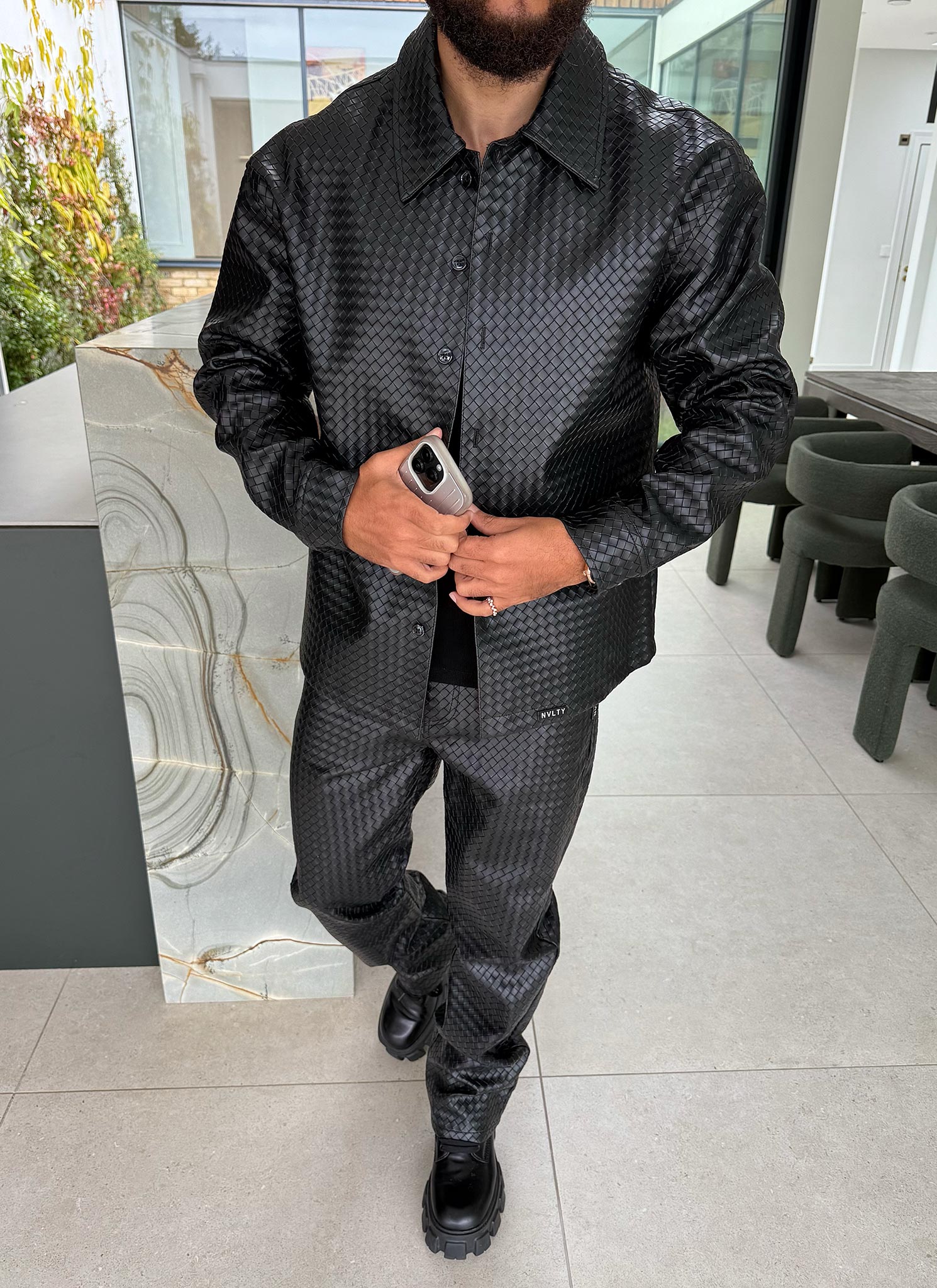 Created using a premium leather fabric, hand-made and tailored for a high-quality finish. The Leather Interlock Shirt features an intricate interlock pattern across the shirt. The perfect standout piece for a fit.