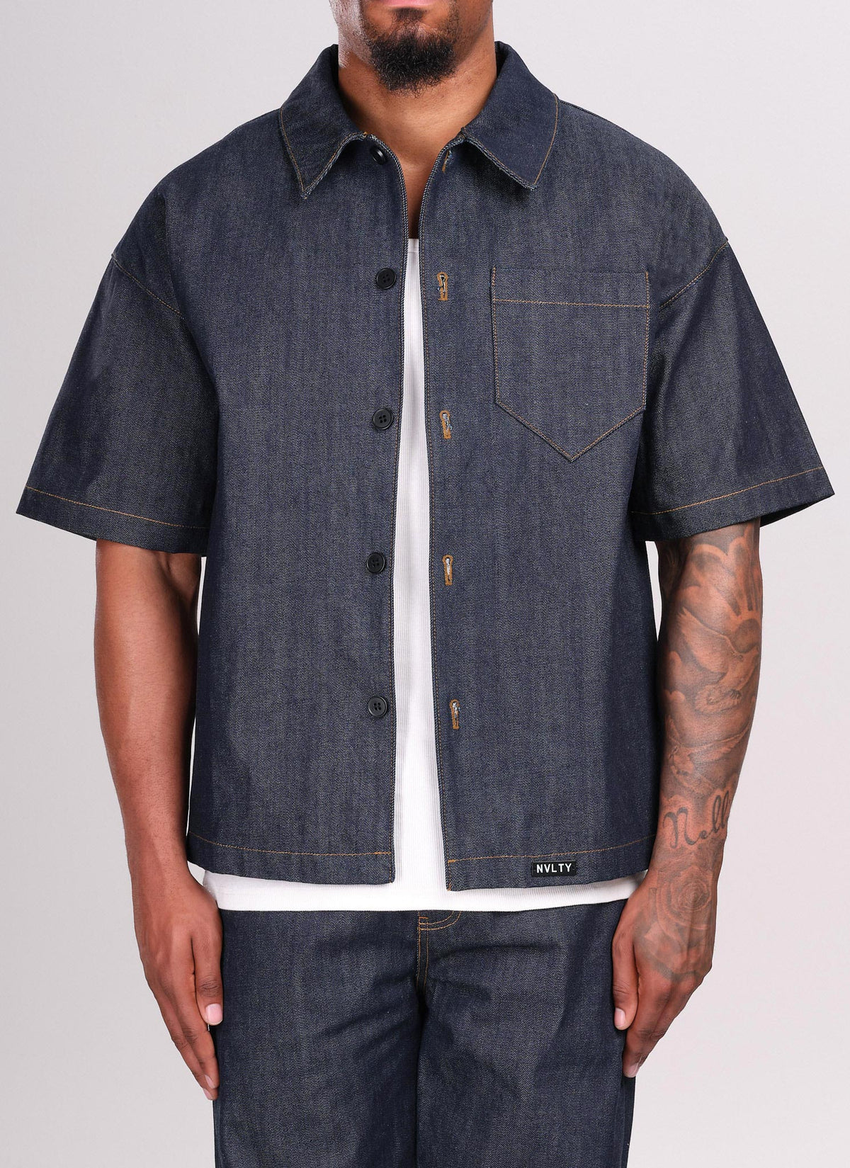 Strukturiertes Selvedge-Jeanshemd – Indigo