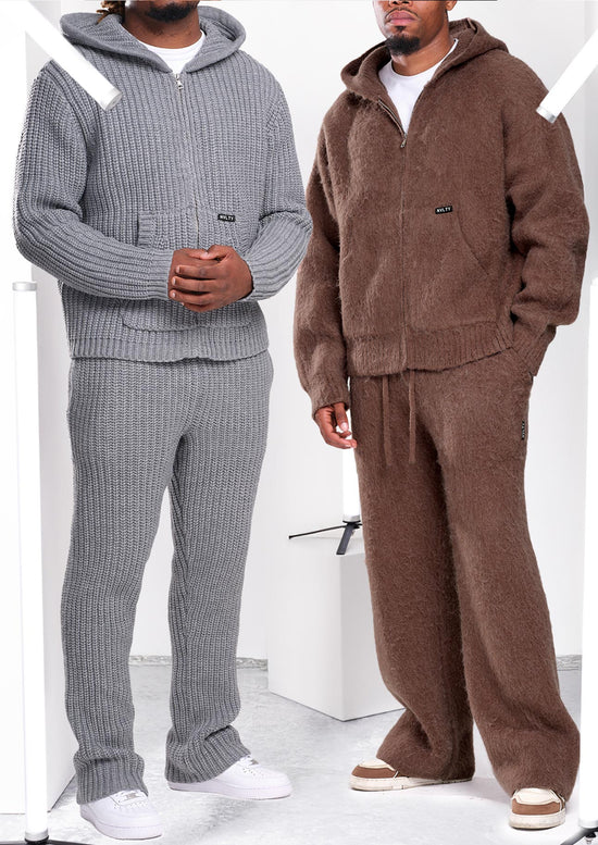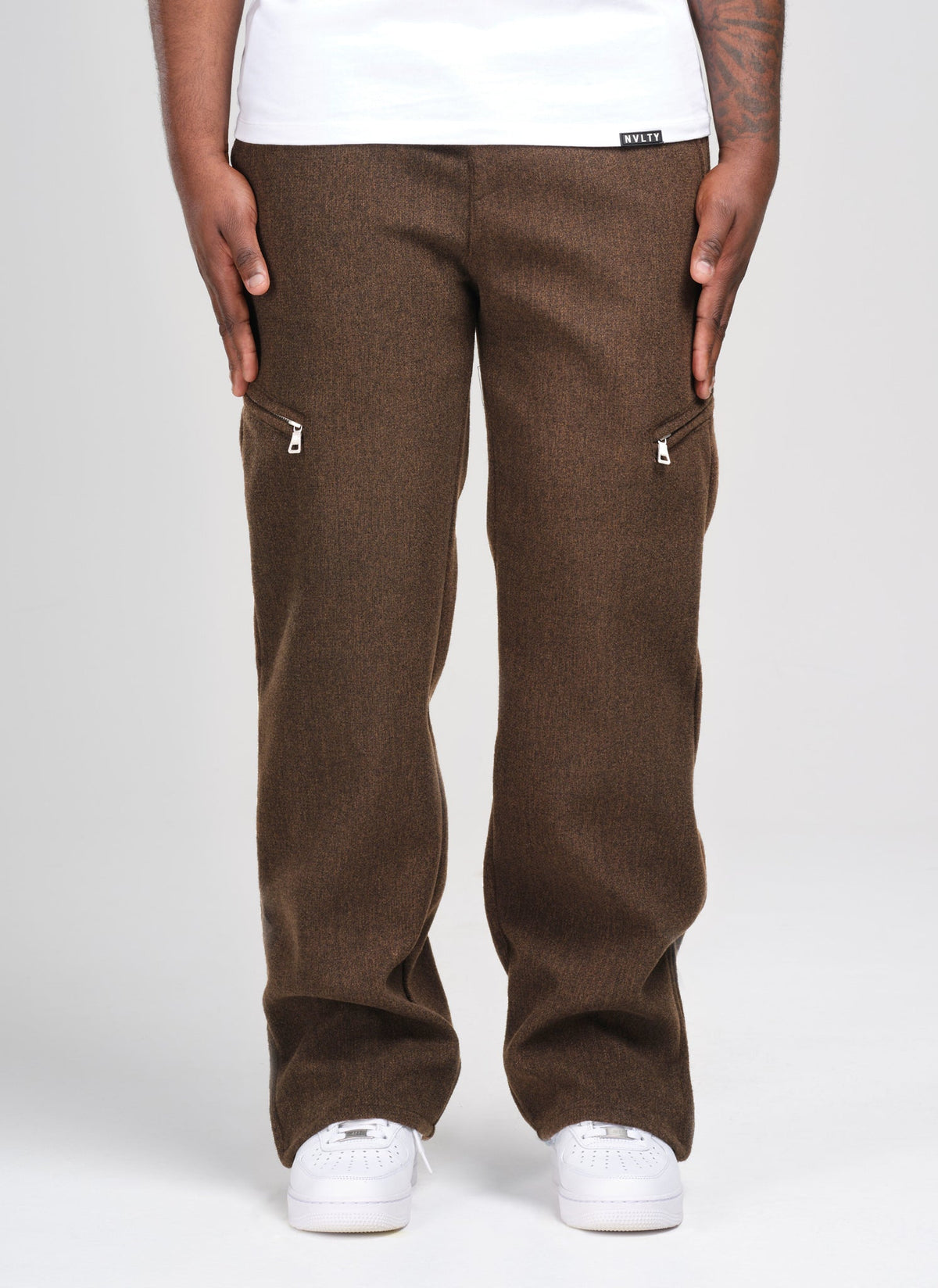 Strukturierte Reißverschlusshose aus schwerer Wolle - Braun