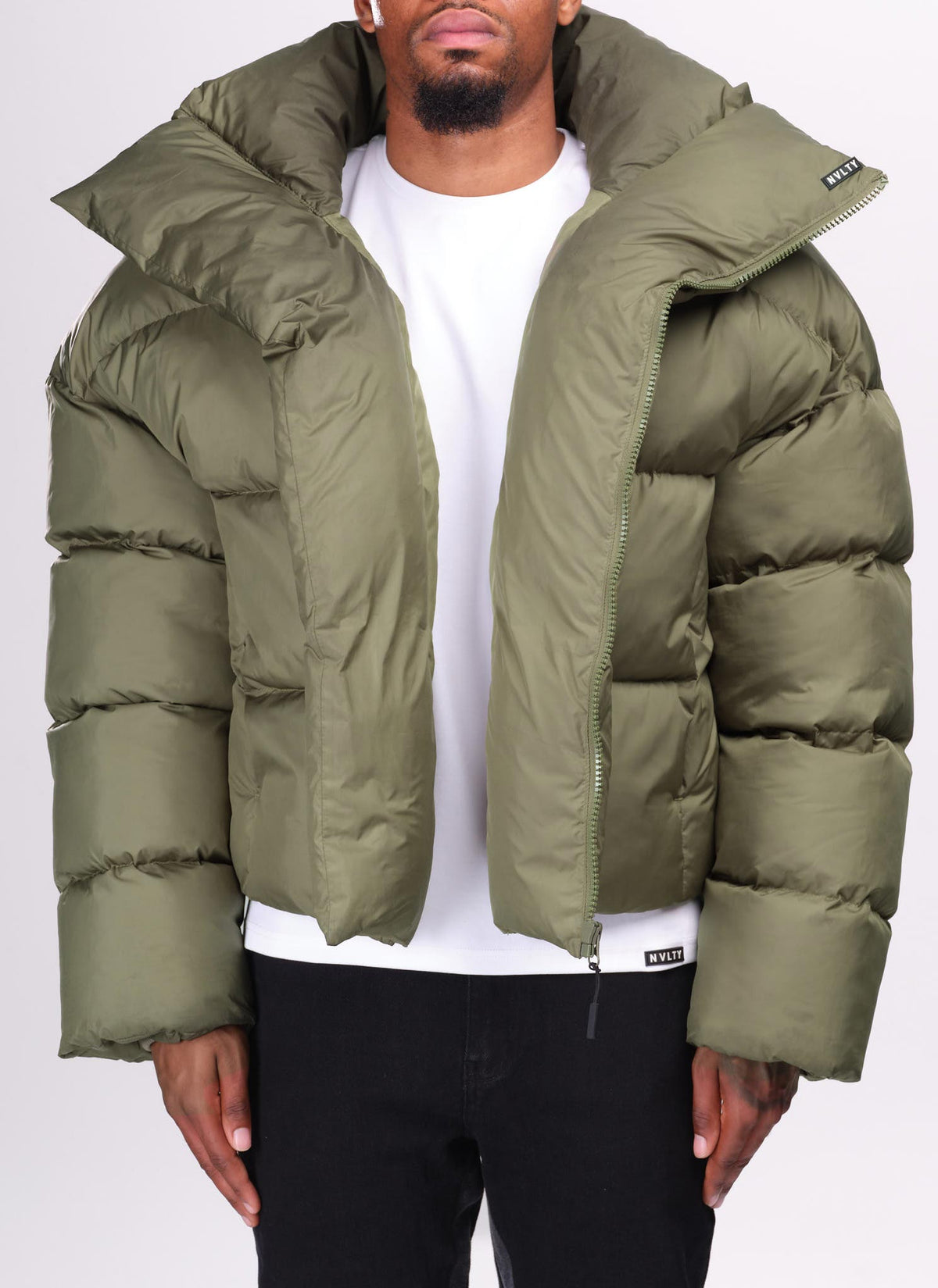 Vintage Pufferjacke mit Schalkragen - Khaki