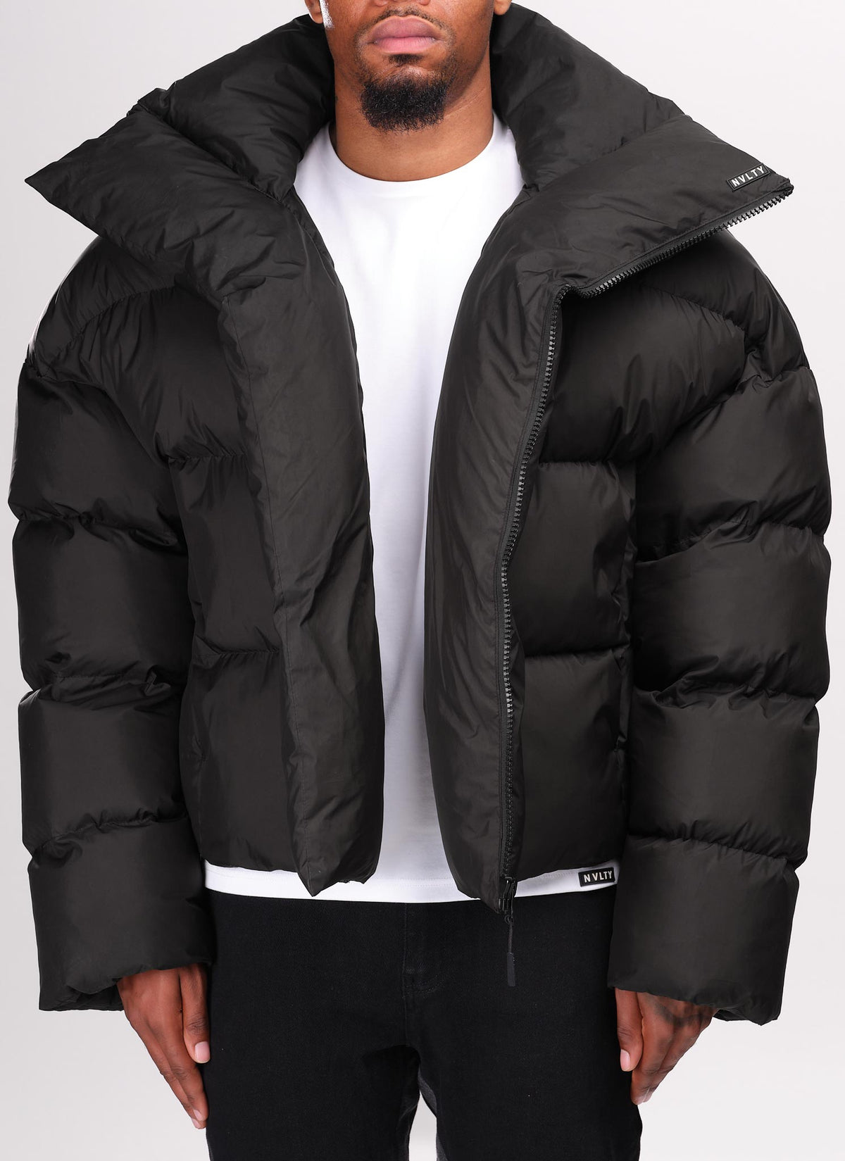 Vintage Pufferjacke mit Schalkragen - Schwarz