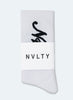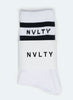 Die Logo-Socken bestehen aus weichem Baumwollstoff und verfügen über doppelte Streifen, die sich über die Socken erstrecken und dazwischen mit einer Logo-Stickerei versehen sind