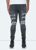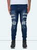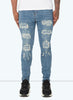 Die Ripped & Repaired Jeans bestehen aus starkem Stretch-Denim und haben ein mitteldünnes Obermaterial, das zum Knöchel hin schmaler wird. Detailliert mit Patchwork-Details im Used-Look am Ober- und Kniebereich des Denims.