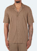 Plissiertes Hemd mit offenem Kragen – Mokka