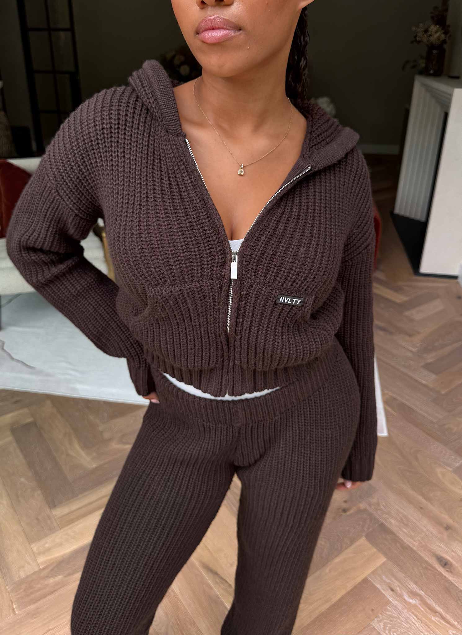 Heavyweight Knitted Zip Hoodie - Brown
