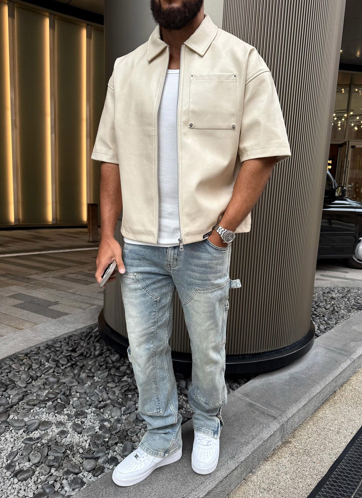 Heavyweight Rivet Leather Shirt - Ivory